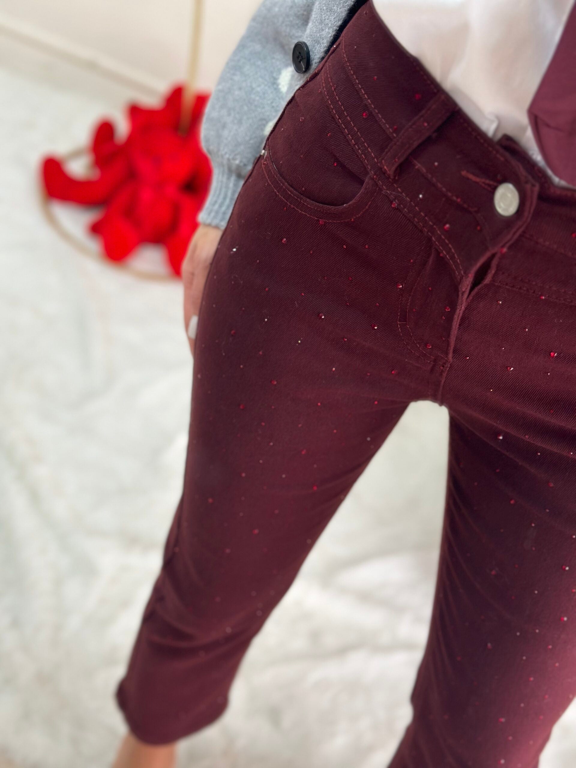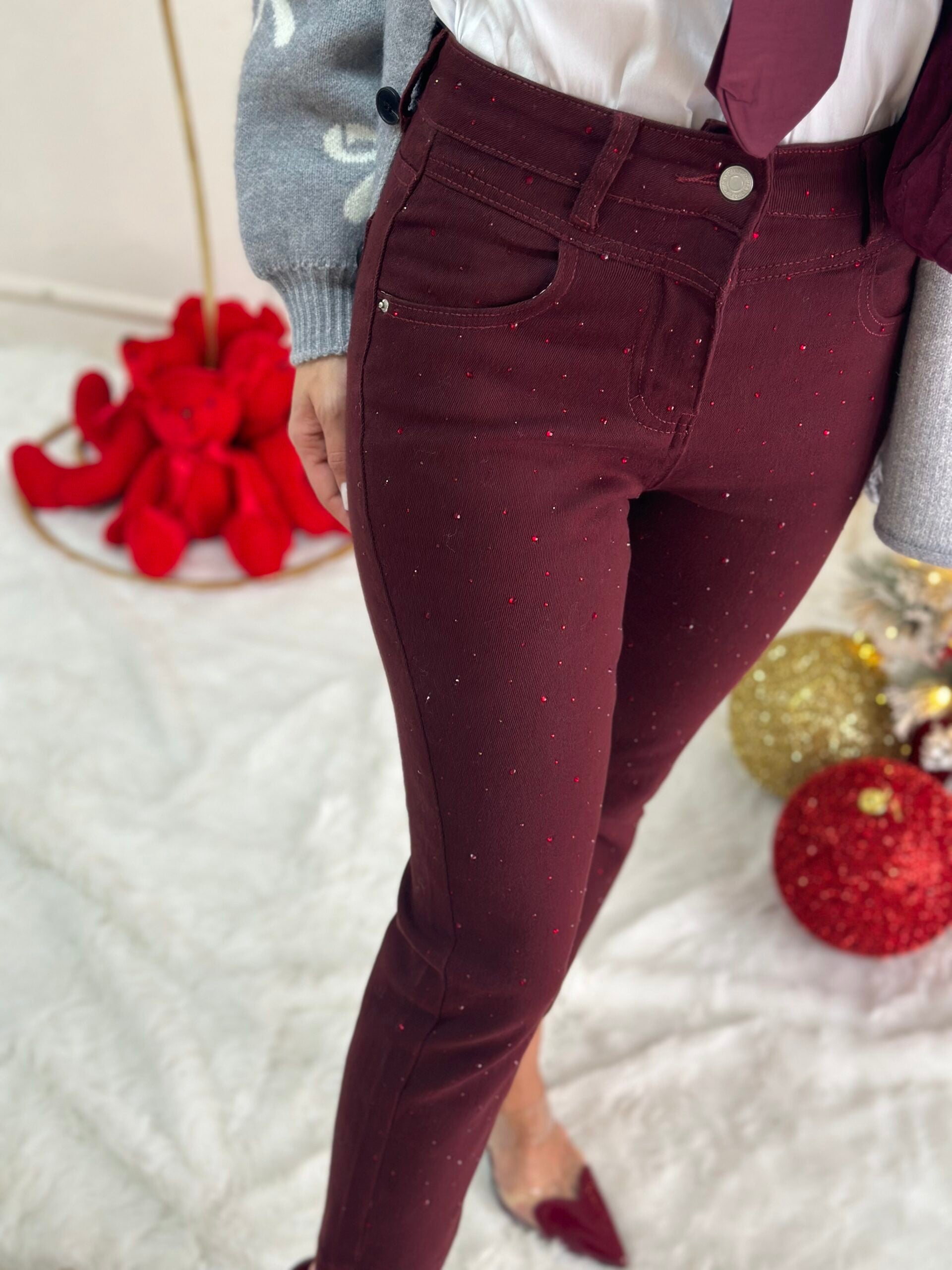 Denim bordeaux e swaroski
