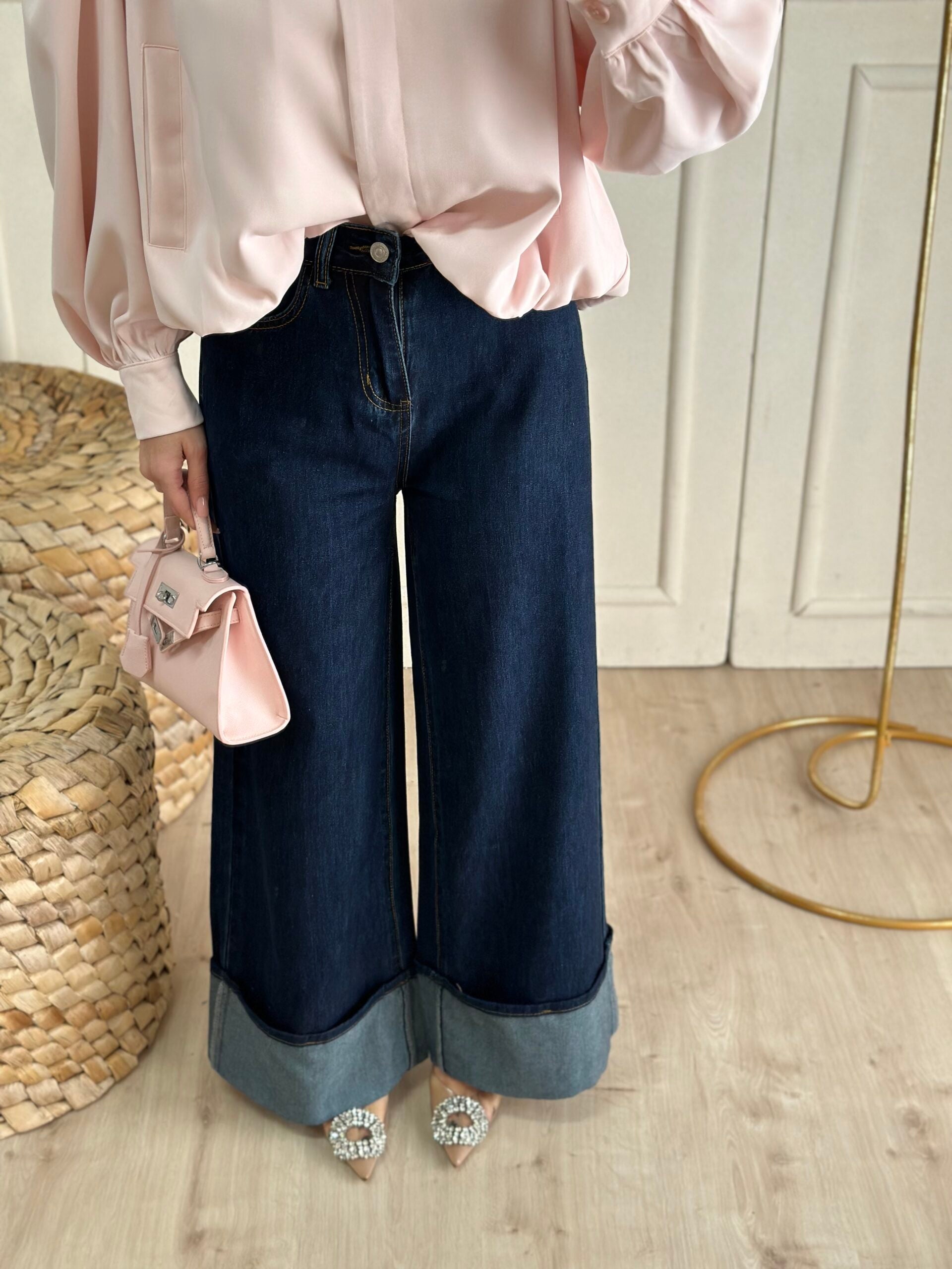 Denim con piega a palazzo