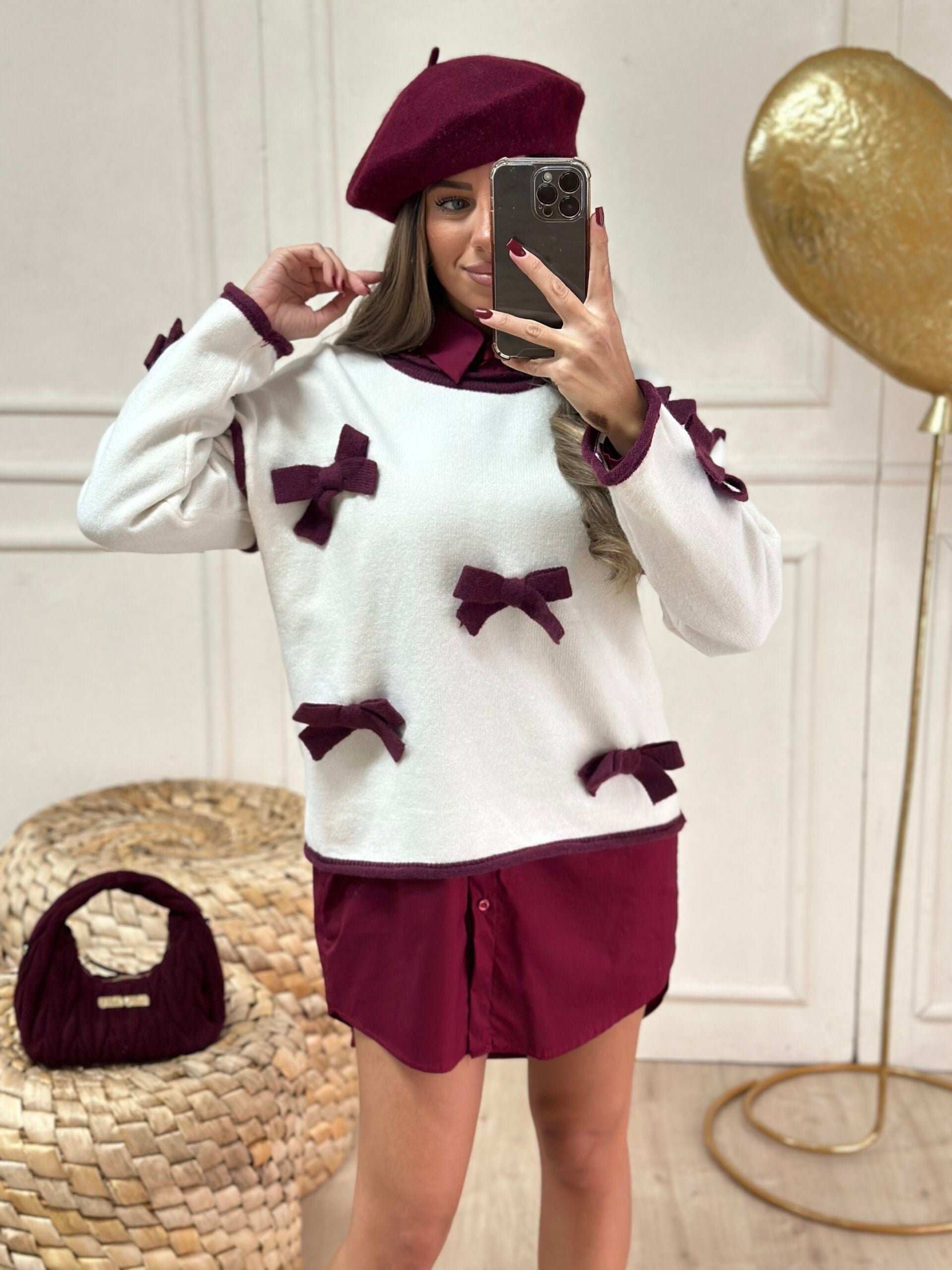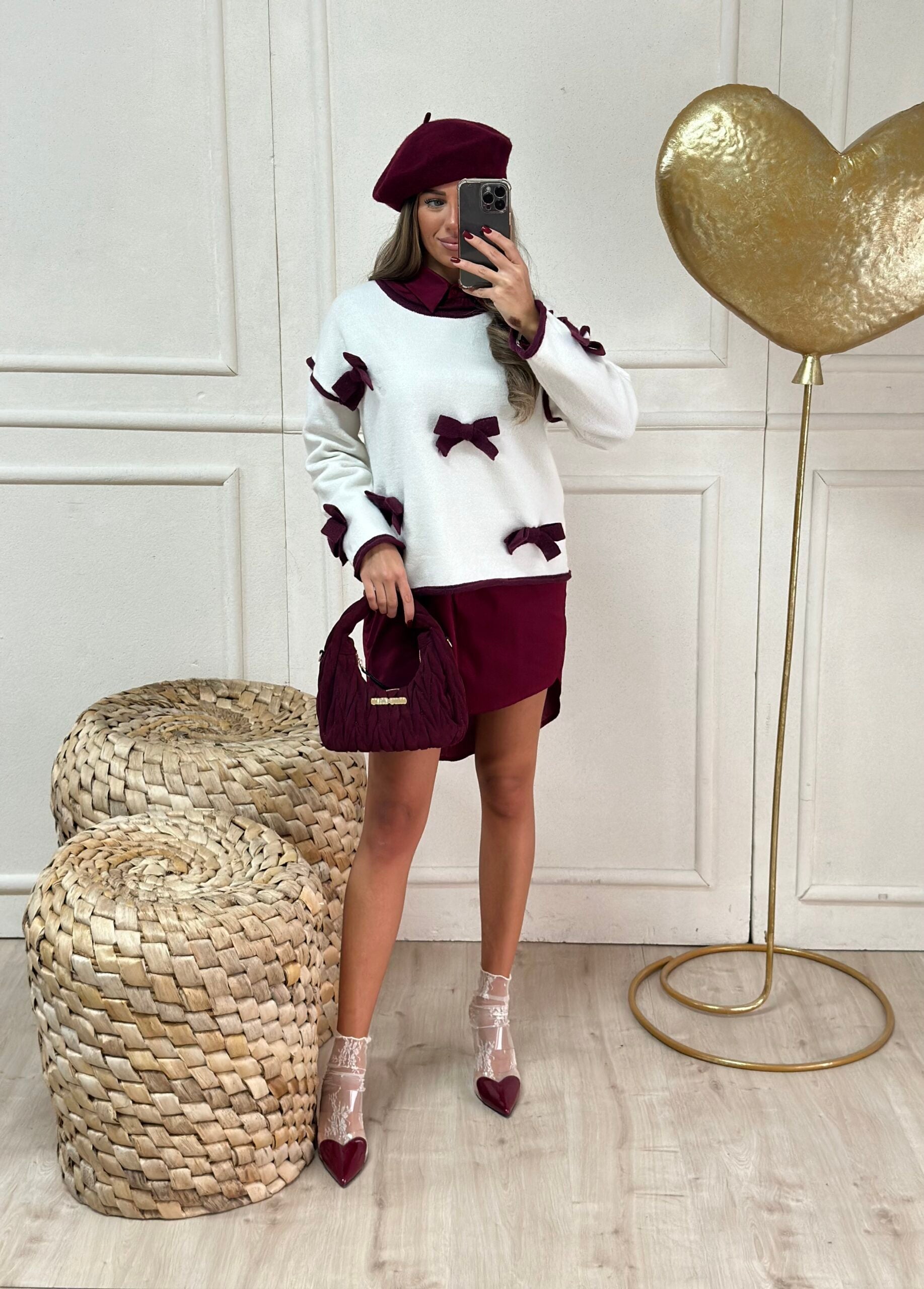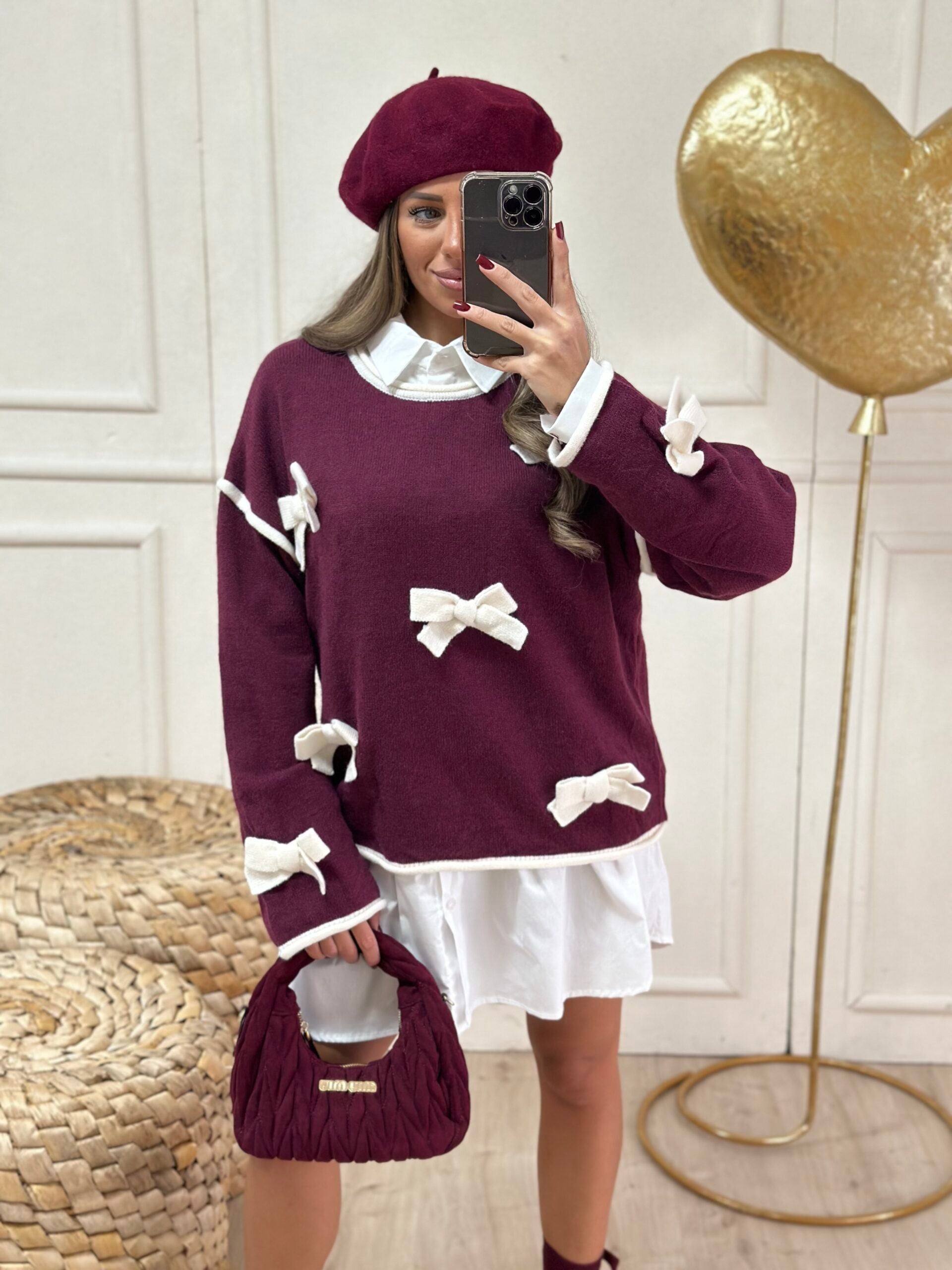 pull bordeaux con fiocchi pendente