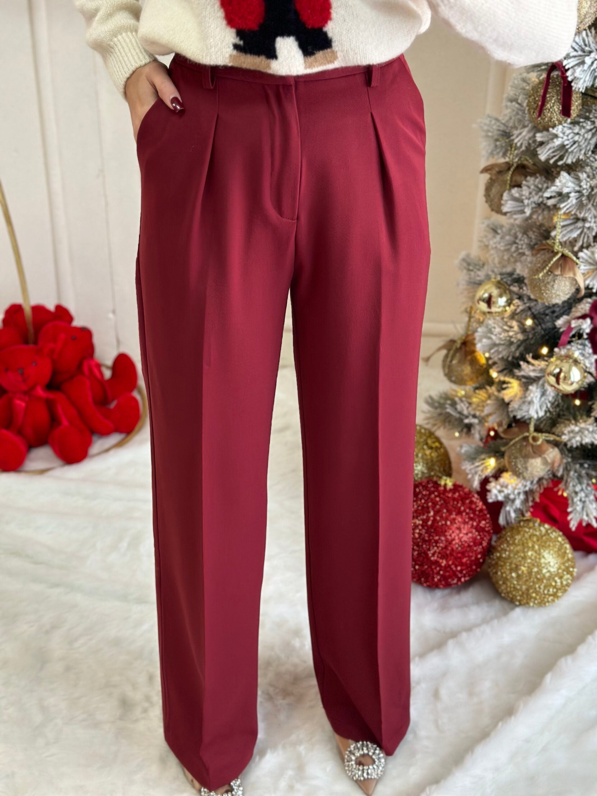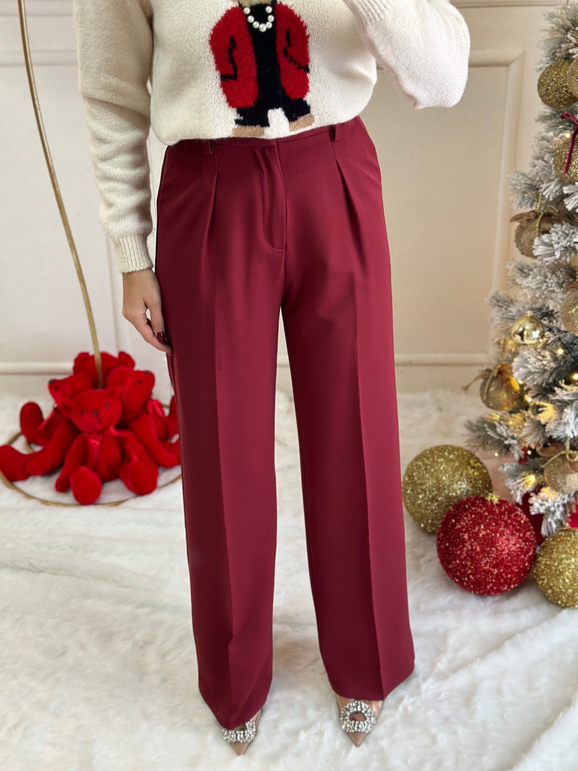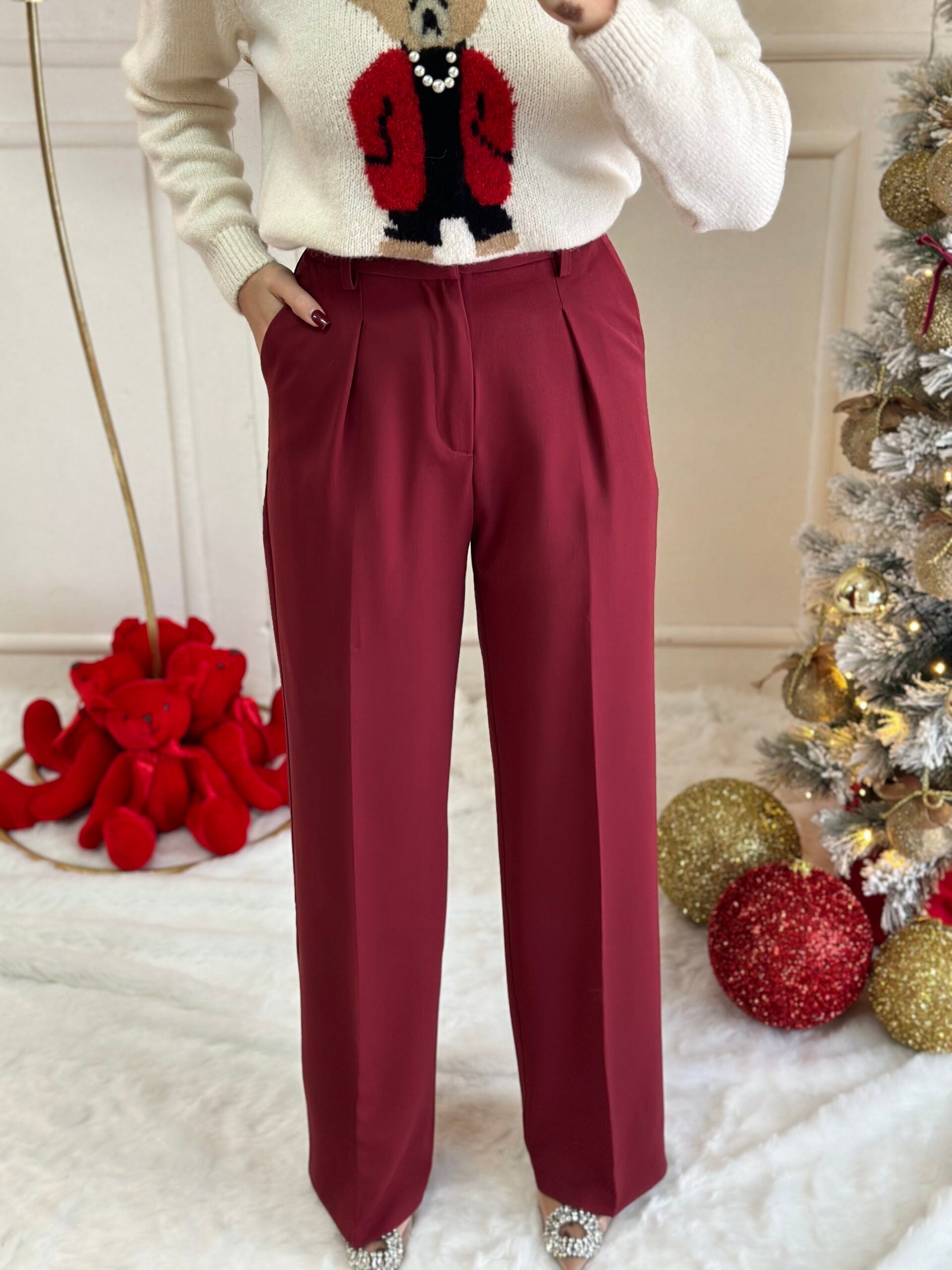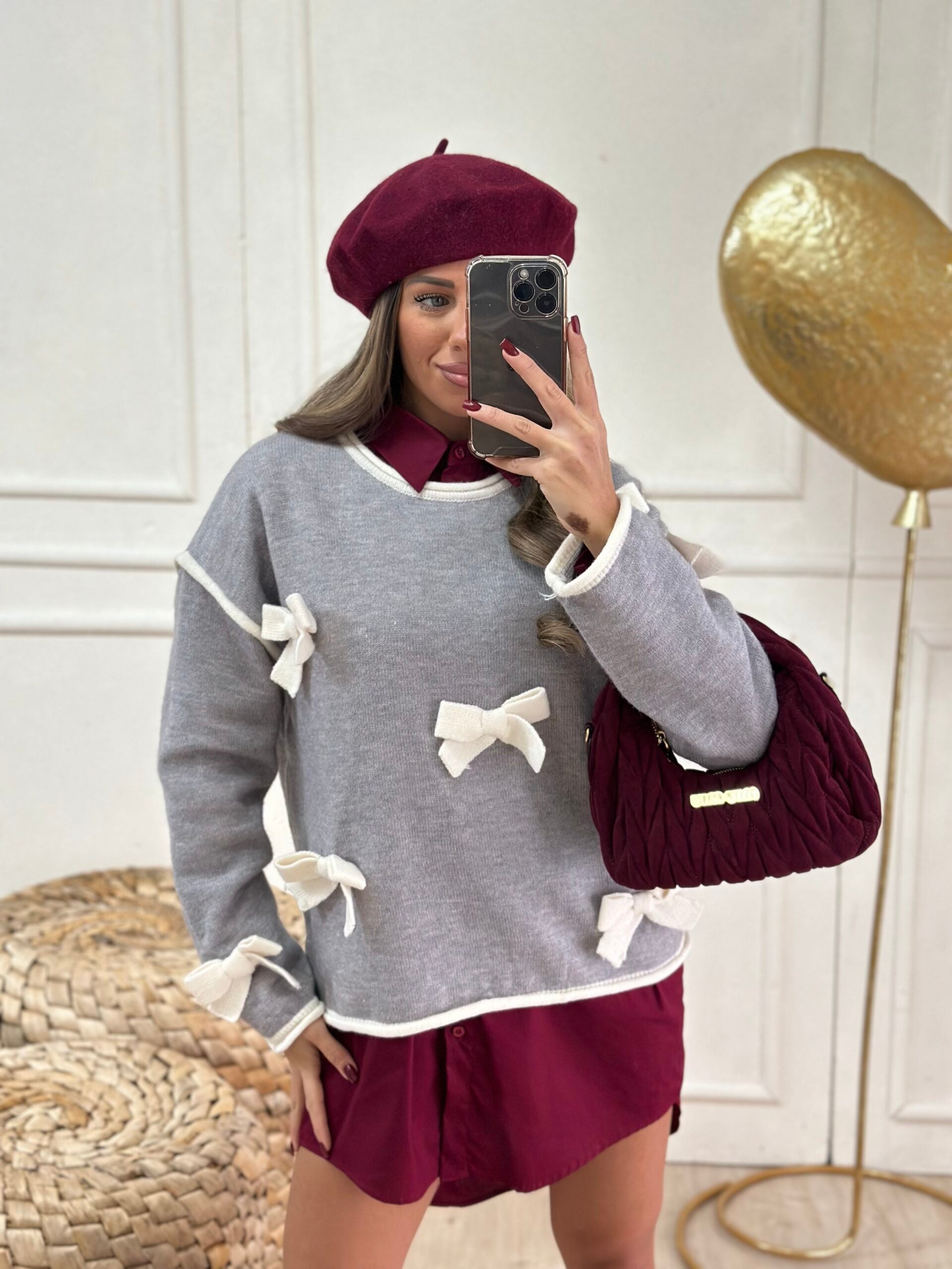pull bordeaux con fiocchi pendente