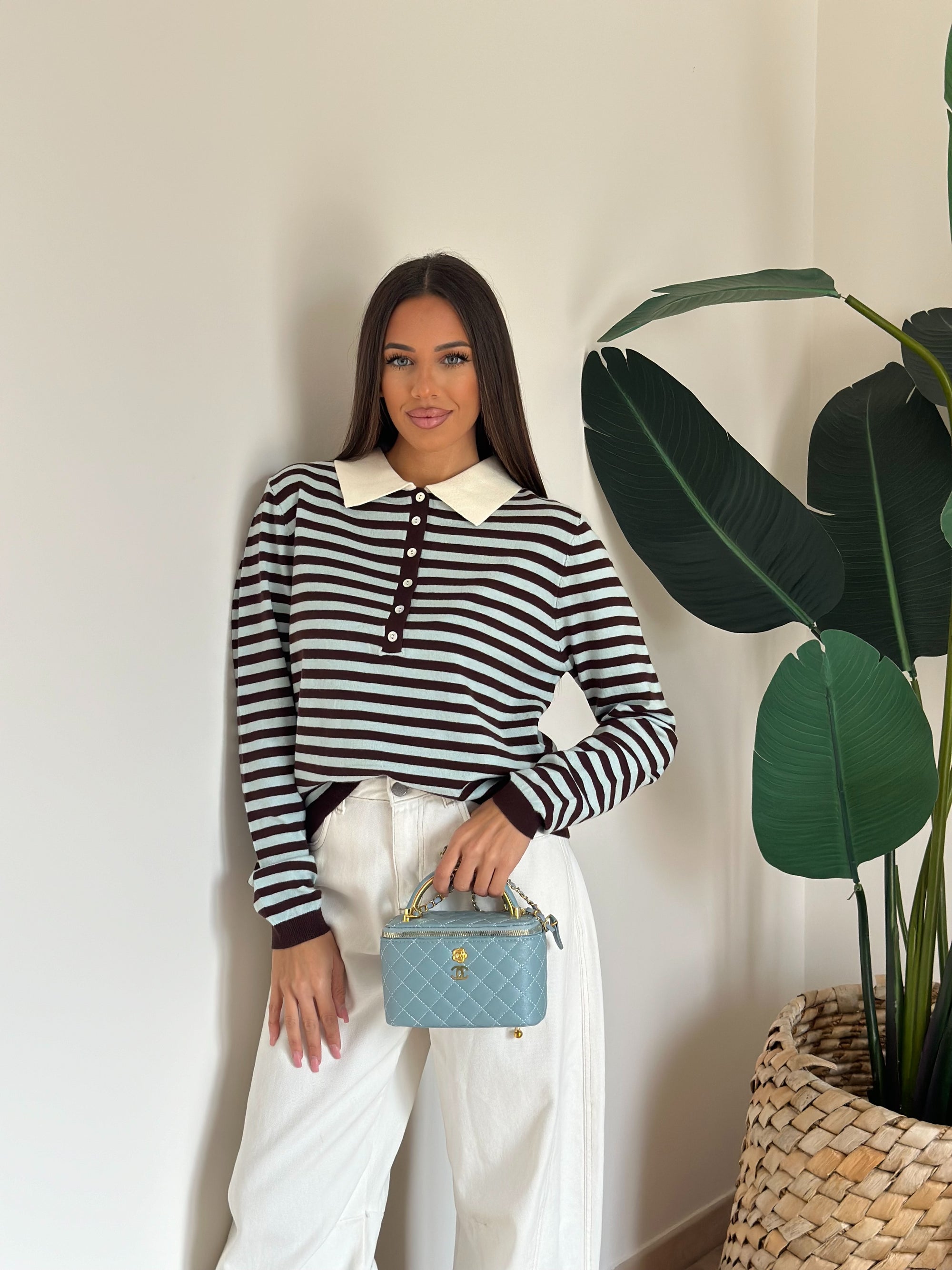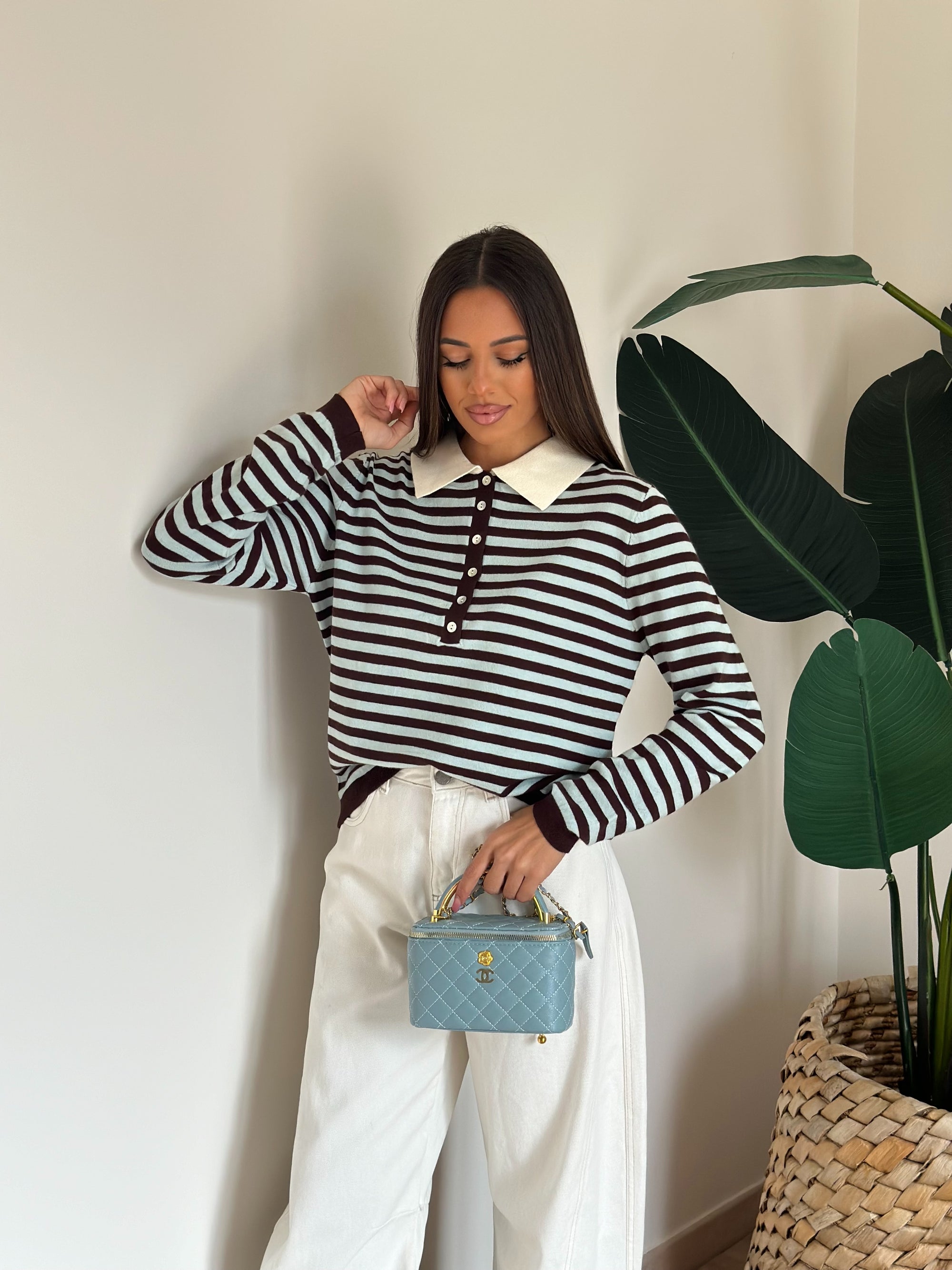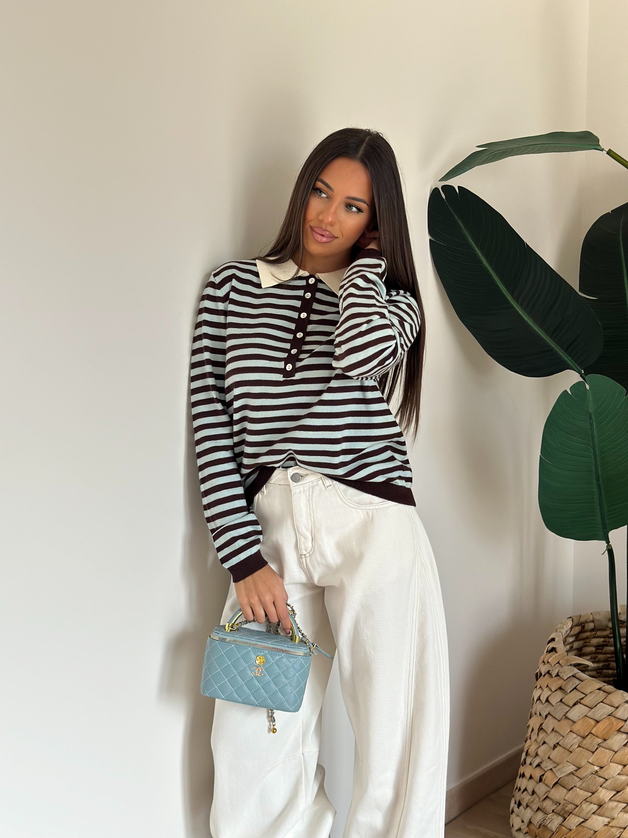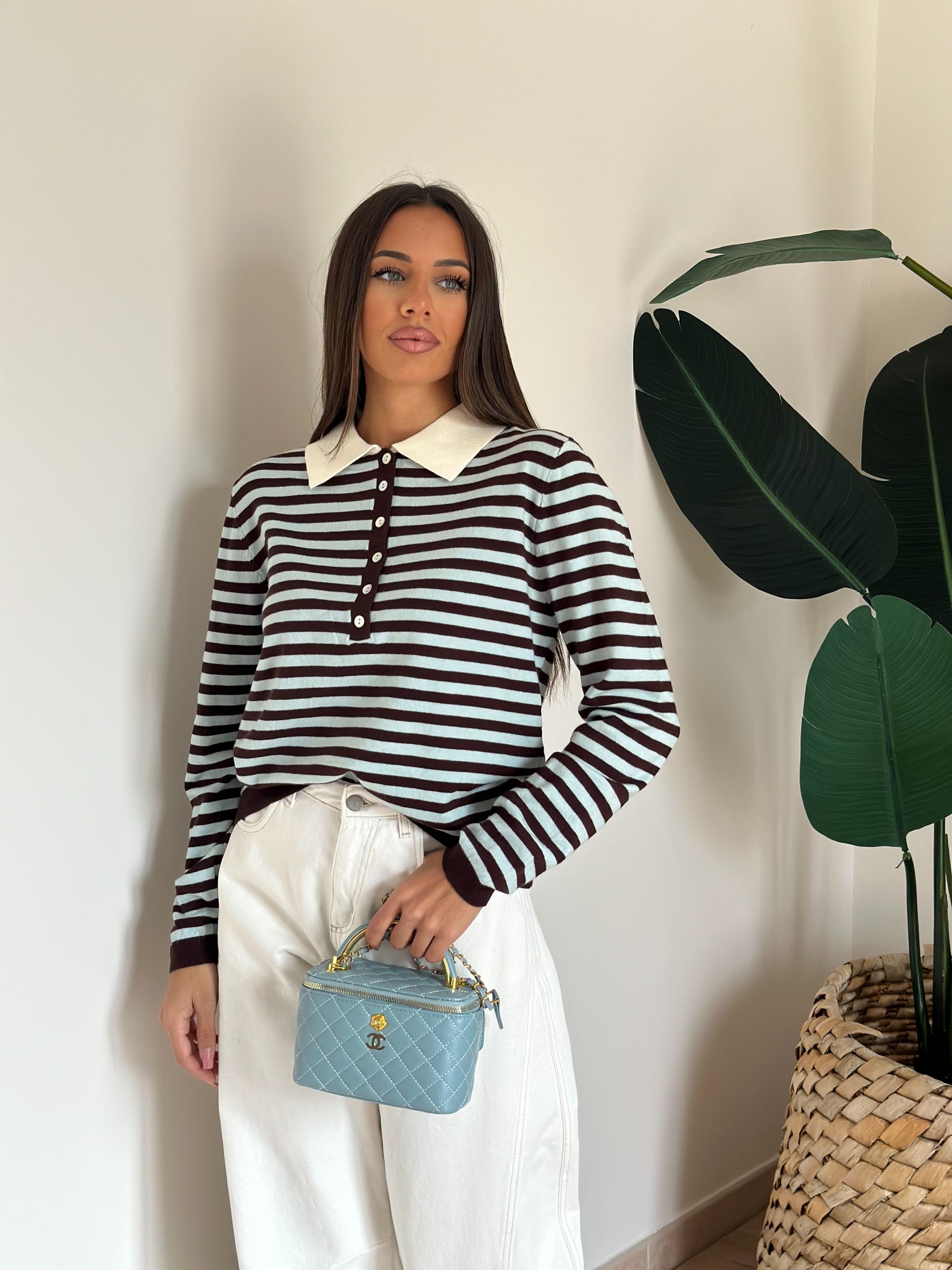 Pull a righe celeste