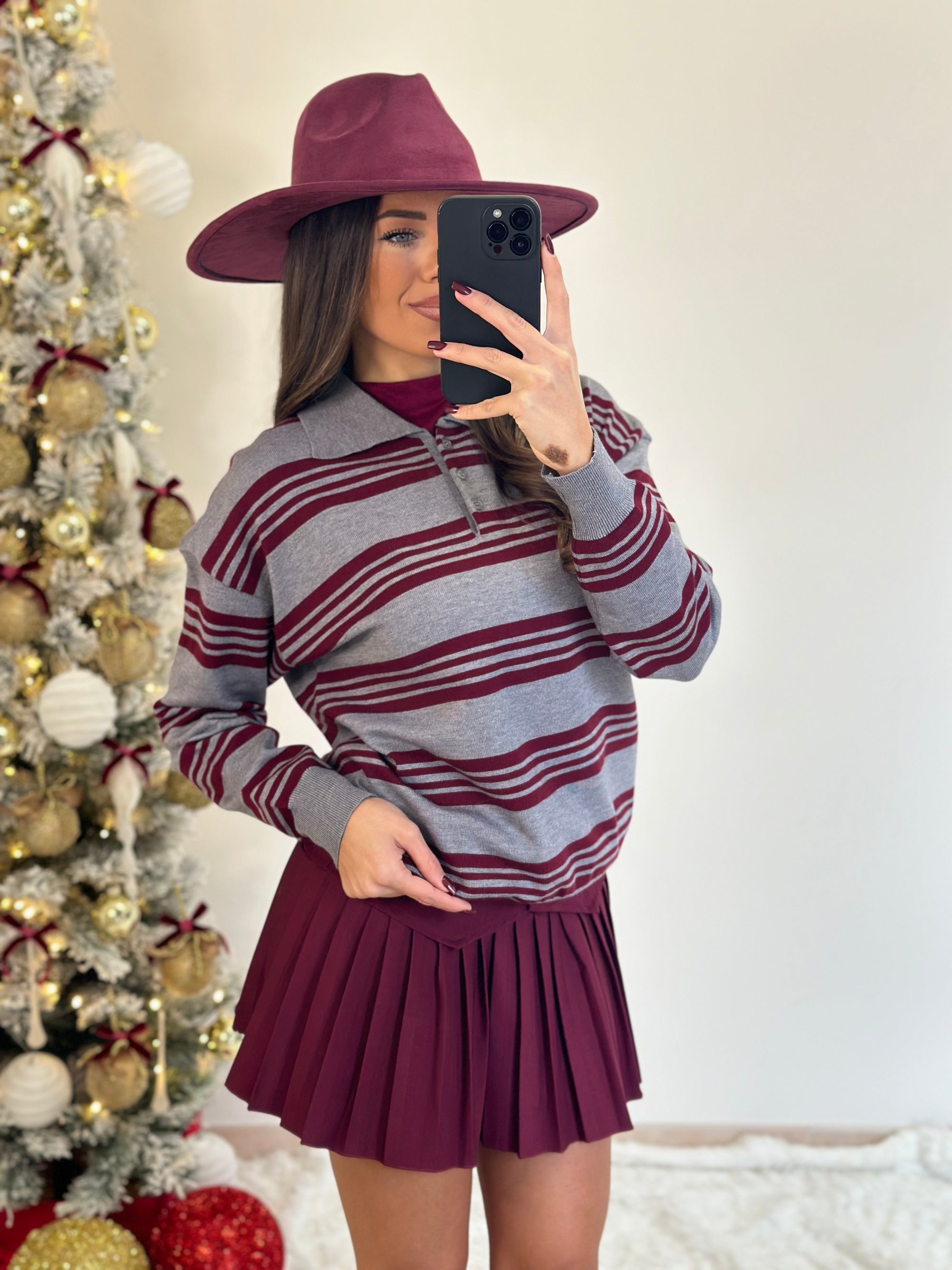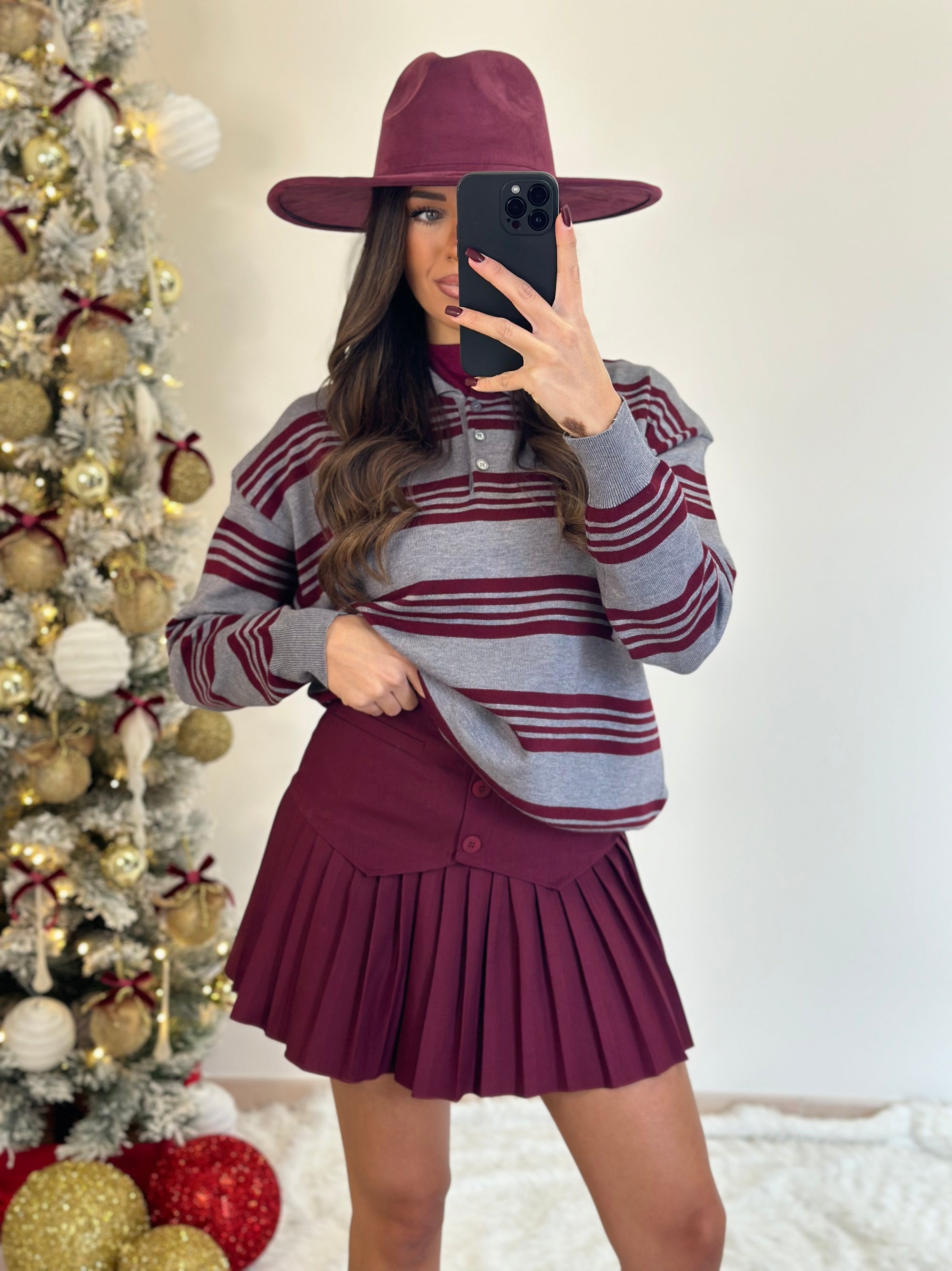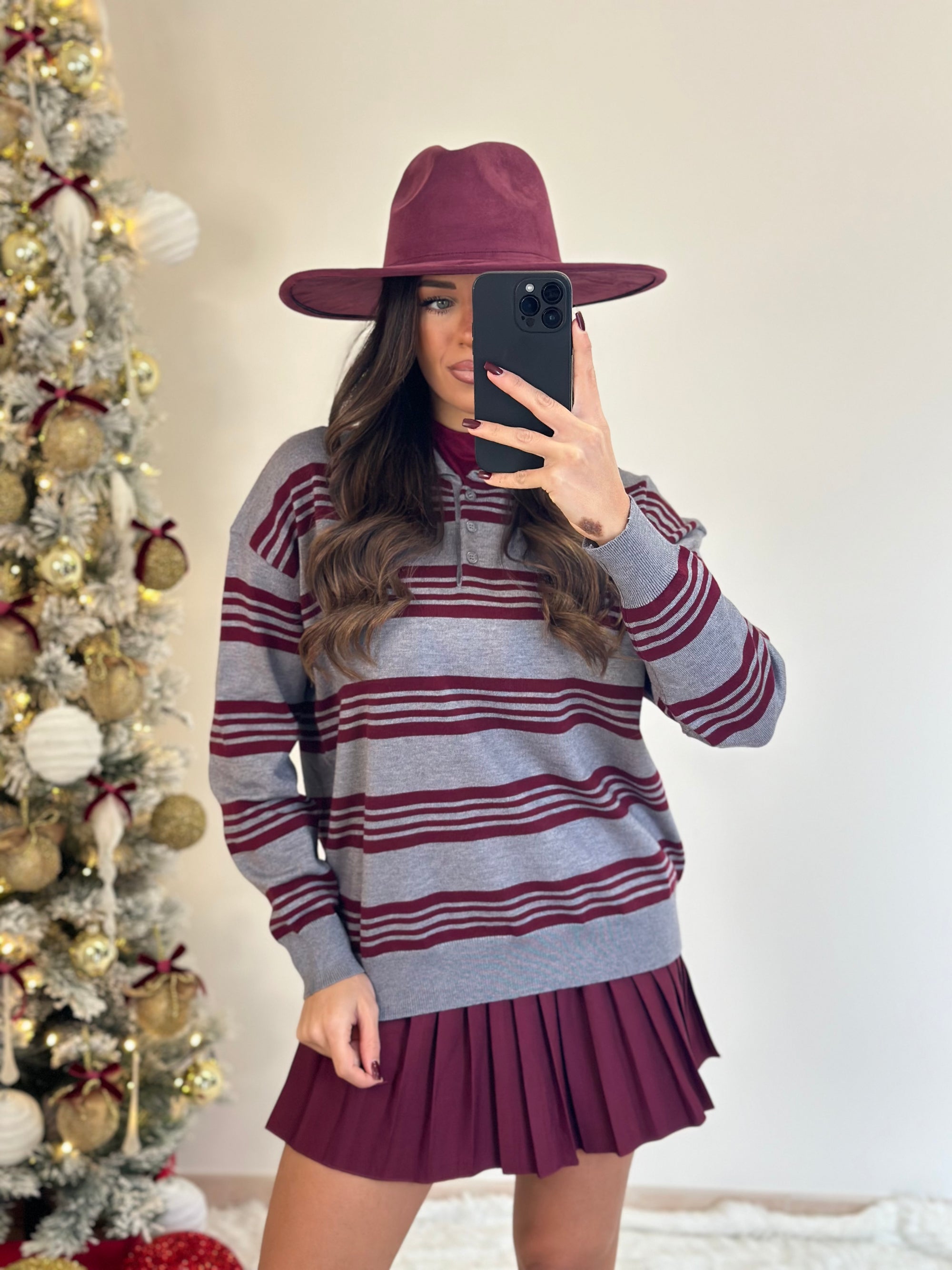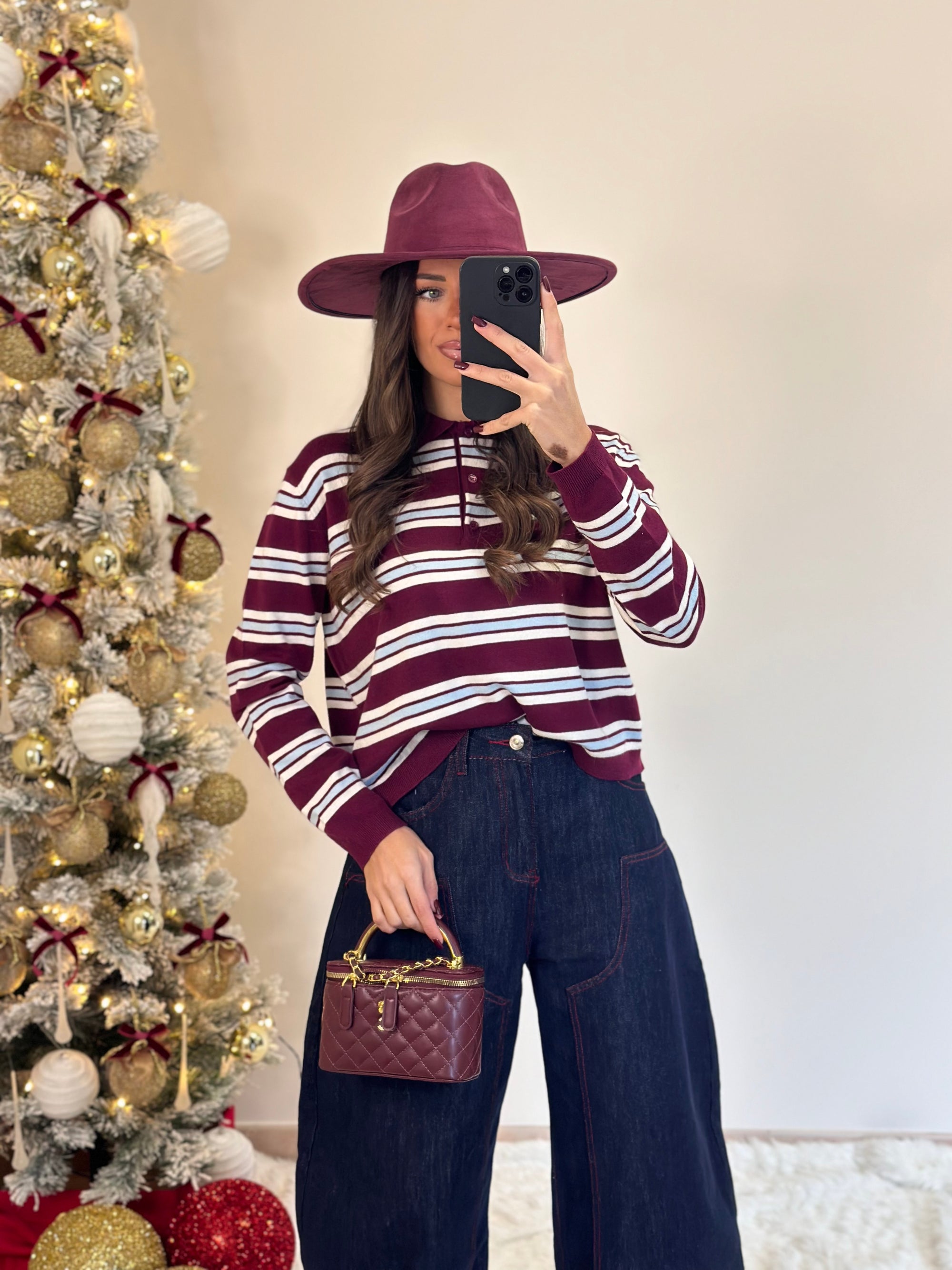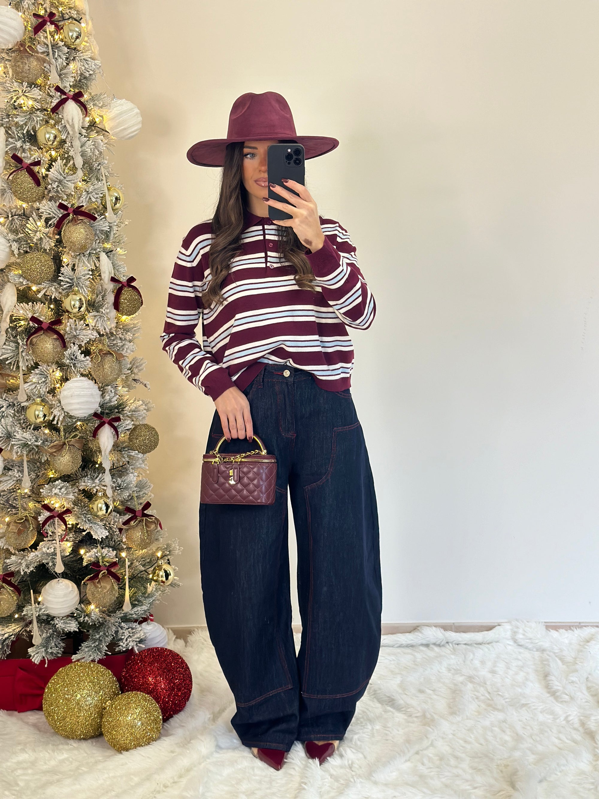 pull bordeaux con fiocchi pendente