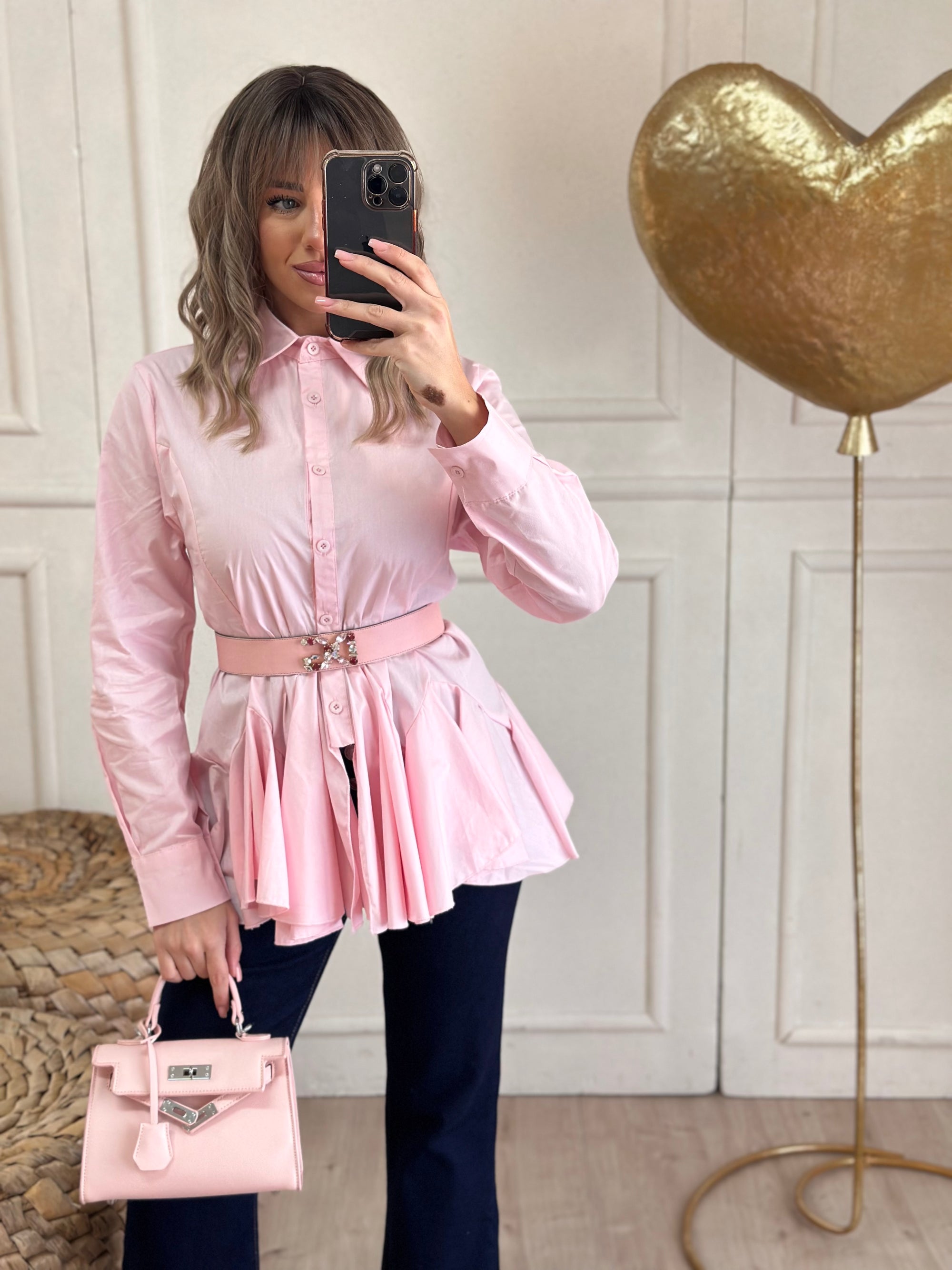 Camicia balze rosa